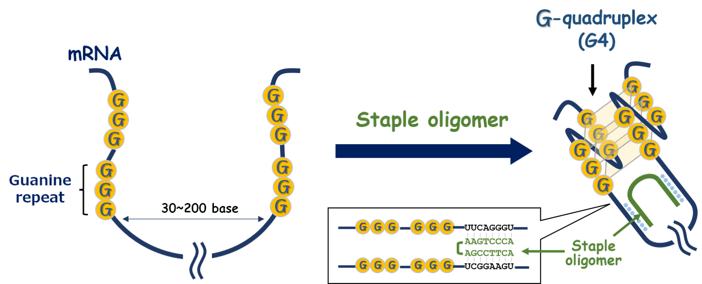 StapleBio is a seed-stage biotech company founded in 2021. Our core platform is based on Staple oligomers, which selectively hybridize with target mRNAs and induce the formation of RNA G-quadruplex (rG4) structures to precisely modulate protein expression—either downregulation or upregulation, depending on the therapeutic objectives. Our mission is to develop safe and precise novel therapeutics for rare, intractable diseases and emerging infectious diseases by leveraging this unique mechanism which enables exceptional target specificity and significantly minimizes off-target effects.